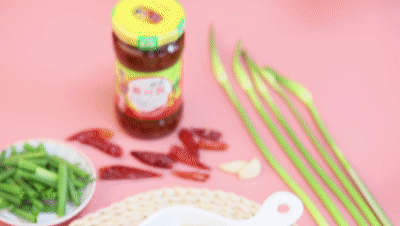 另起鍋熱油,倒入姜、蔥、蒜和干辣椒炒出香味。再倒入蒜臺(tái),炒斷生